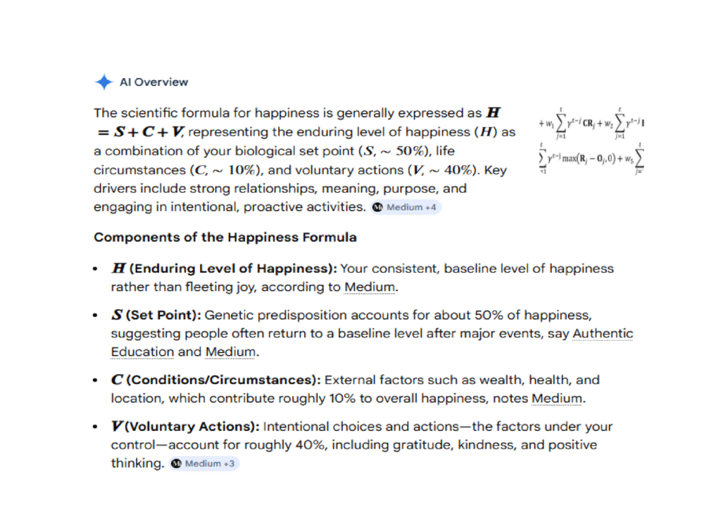 The scientific formula for happiness is generally expressed as